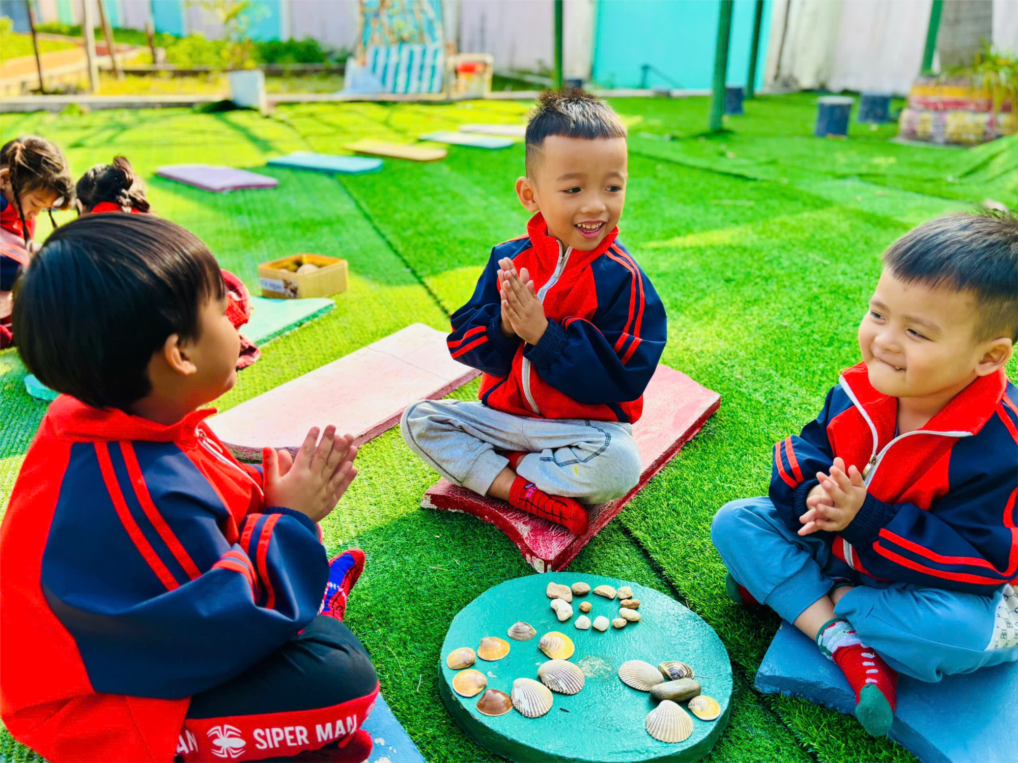 Không gian ngoài trời mang đến cho các con cảm giác thoải mái, hứng thú, giúp trẻ mạnh dạn, tự tin và thêm yêu thiên nhiên xung quanh mình