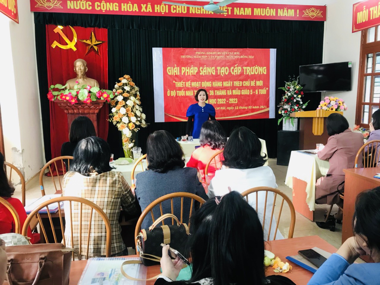Để thực hiện tốt công tác chuyên môn năm học 2022-2023. Ngày 13/01/2023 Trường mầm non “Văn Phong; Đồng Bài ” đã phối hợp tổ chức giải pháp sáng tạo “ Thiết kế hoạt động hàng ngày theo chủ đề mới ở độ tuổi nhà trẻ 24-36 tháng và mẫu giáo 5-6 tuổi ” năm học 2022-2023.