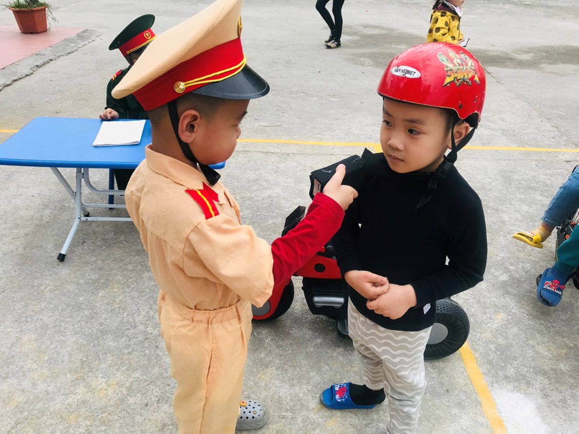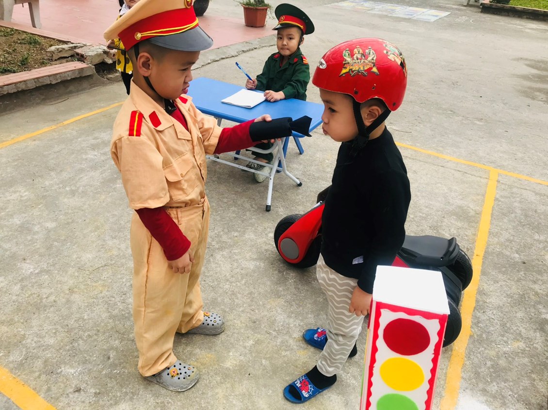Với trẻ được tham gia trải nghiệm là một hoạt động vô cùng hứng thú. Ở sân chơi này trẻ hiểu được các phương tiện tham gia giao thông đường bộ. Đó không chỉ trên ti vi mà chính trẻ là chủ nhân của những chiếc xe máy, xe đạp, xe ô tô được tự mình tham gia giao thông đường bộ. Trẻ háo hức khi tự mình mang trên mình bộ áo quân phục của chú cảnh sát giao thông.