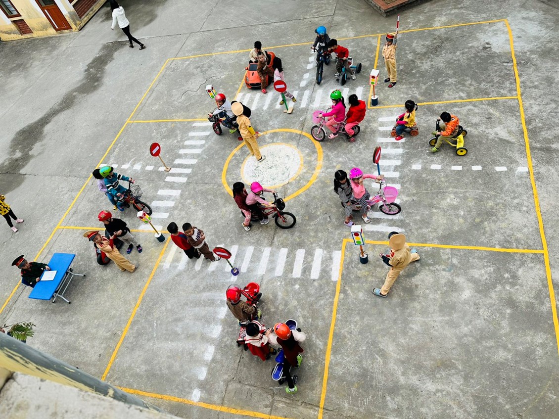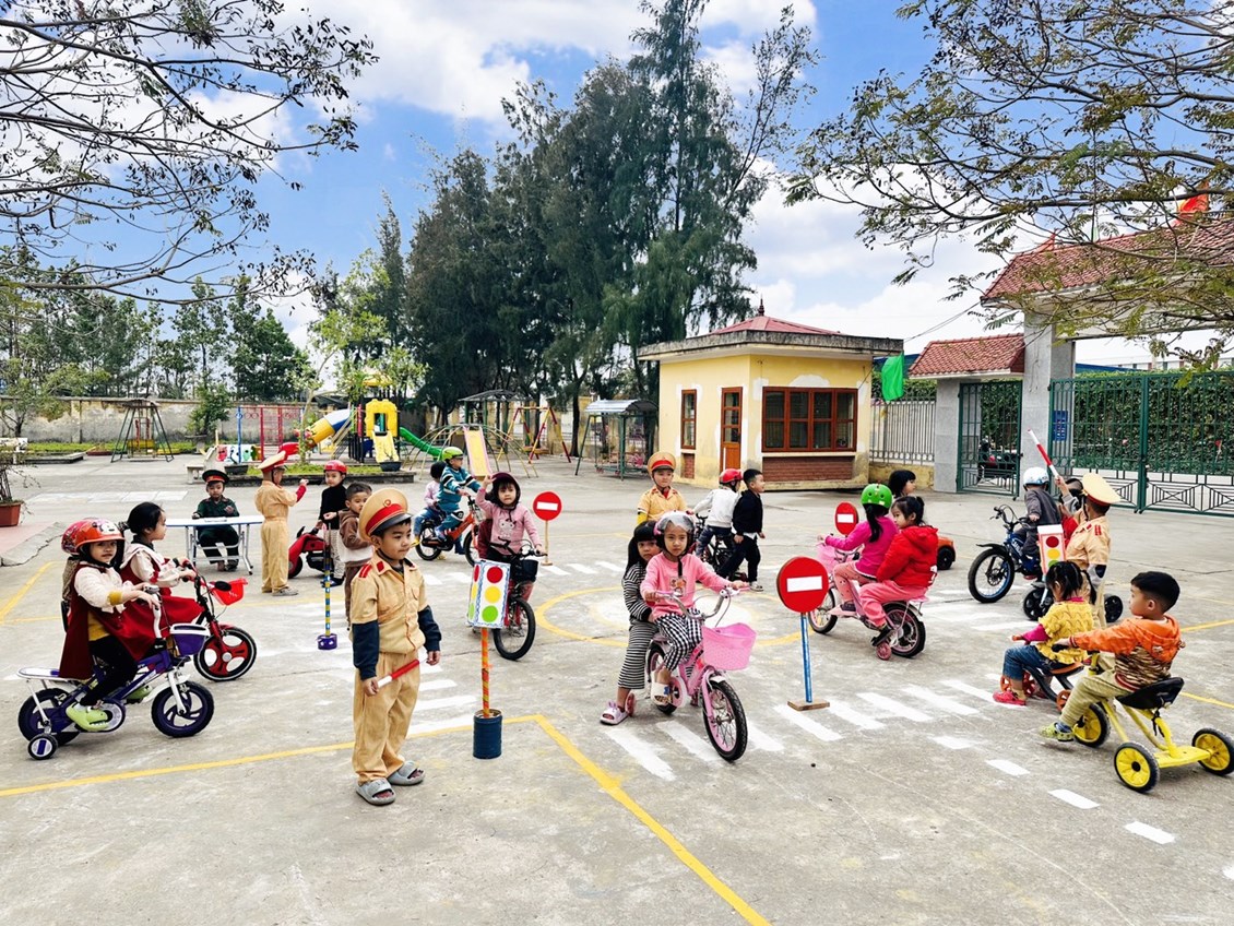 Hình ảnh trẻ thực hành giao thông với một số PTGT đường bộ