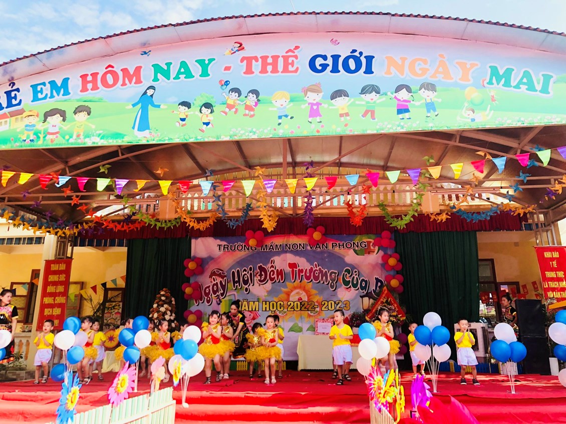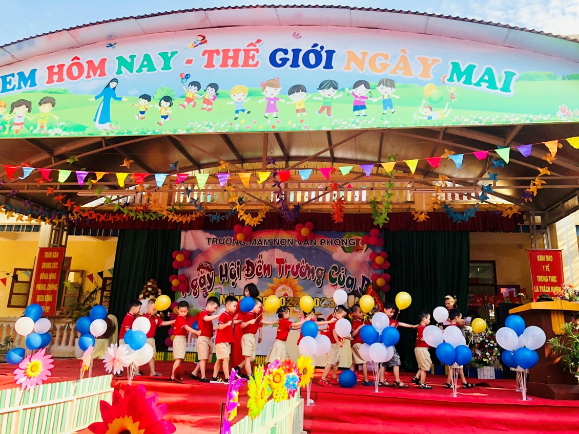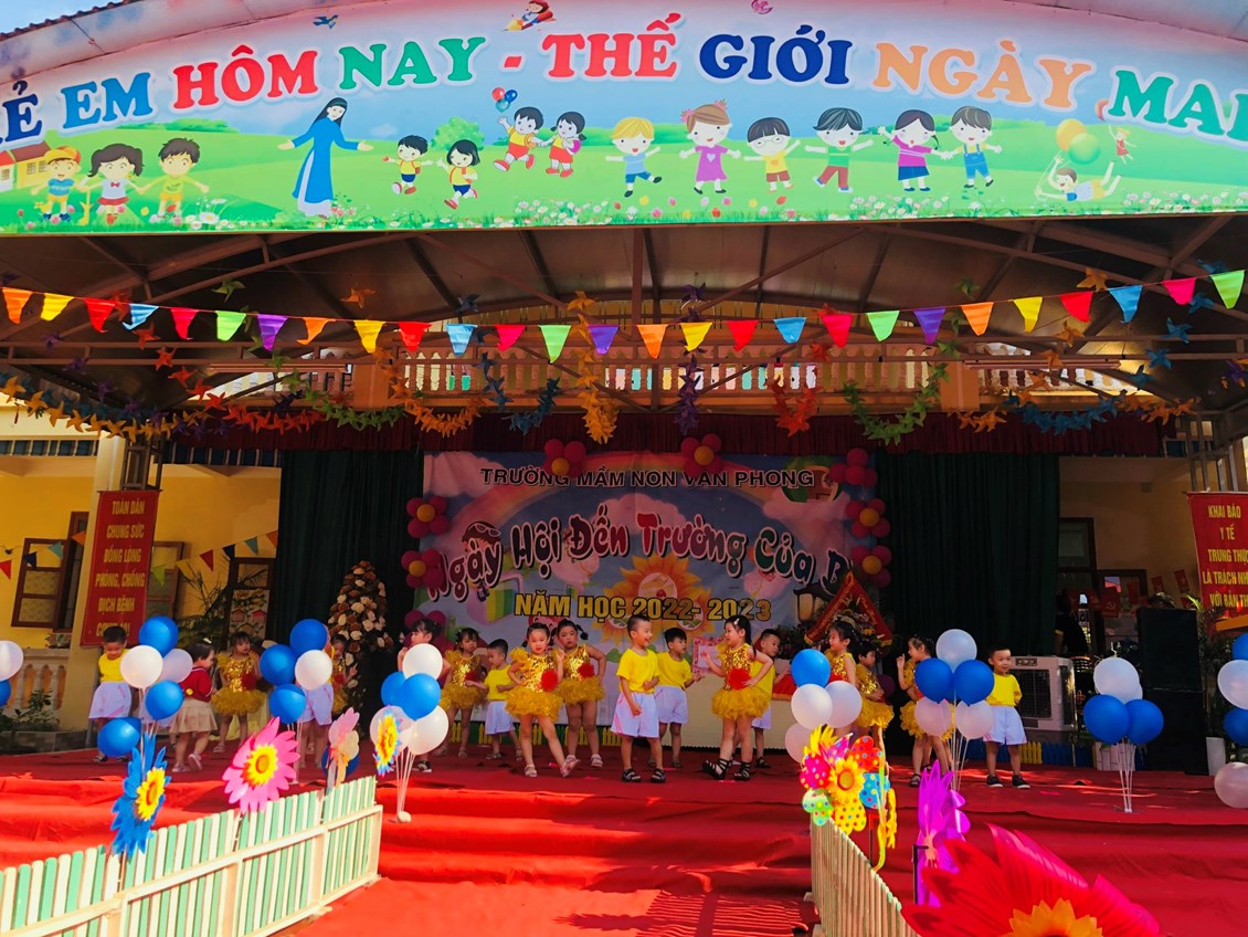 Hòa trong không khí những ngày thu lịch sử đầy phấn khởi và tự hào, cả nước hân hoan chào mừng chào mừng kỉ niệm 77 năm Cách mạng tháng Tám và Quốc khánh 2/9. Thực hiện sự chỉ đạo của phòng GD&ĐT, được sự nhất trí của các cấp các ngành. Hôm nay, ngày 5/09/2022 trường mầm non Văn Phong long trọng tổ chức "Ngày hôi đến trường của bé" Năm học 2022 - 2023.