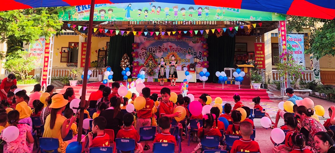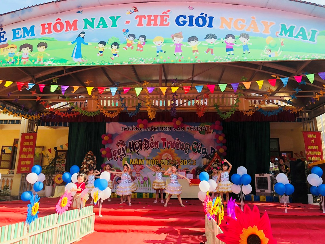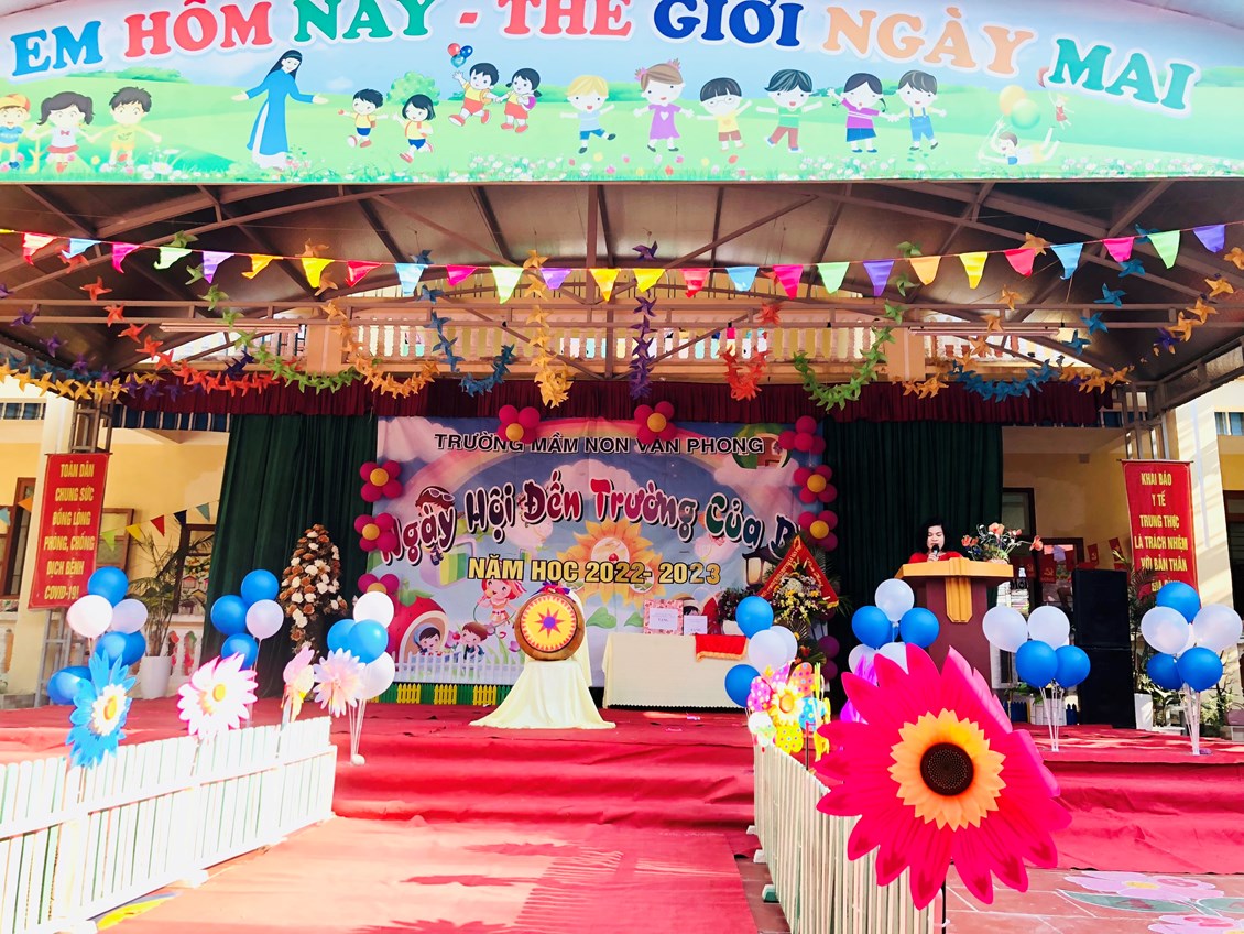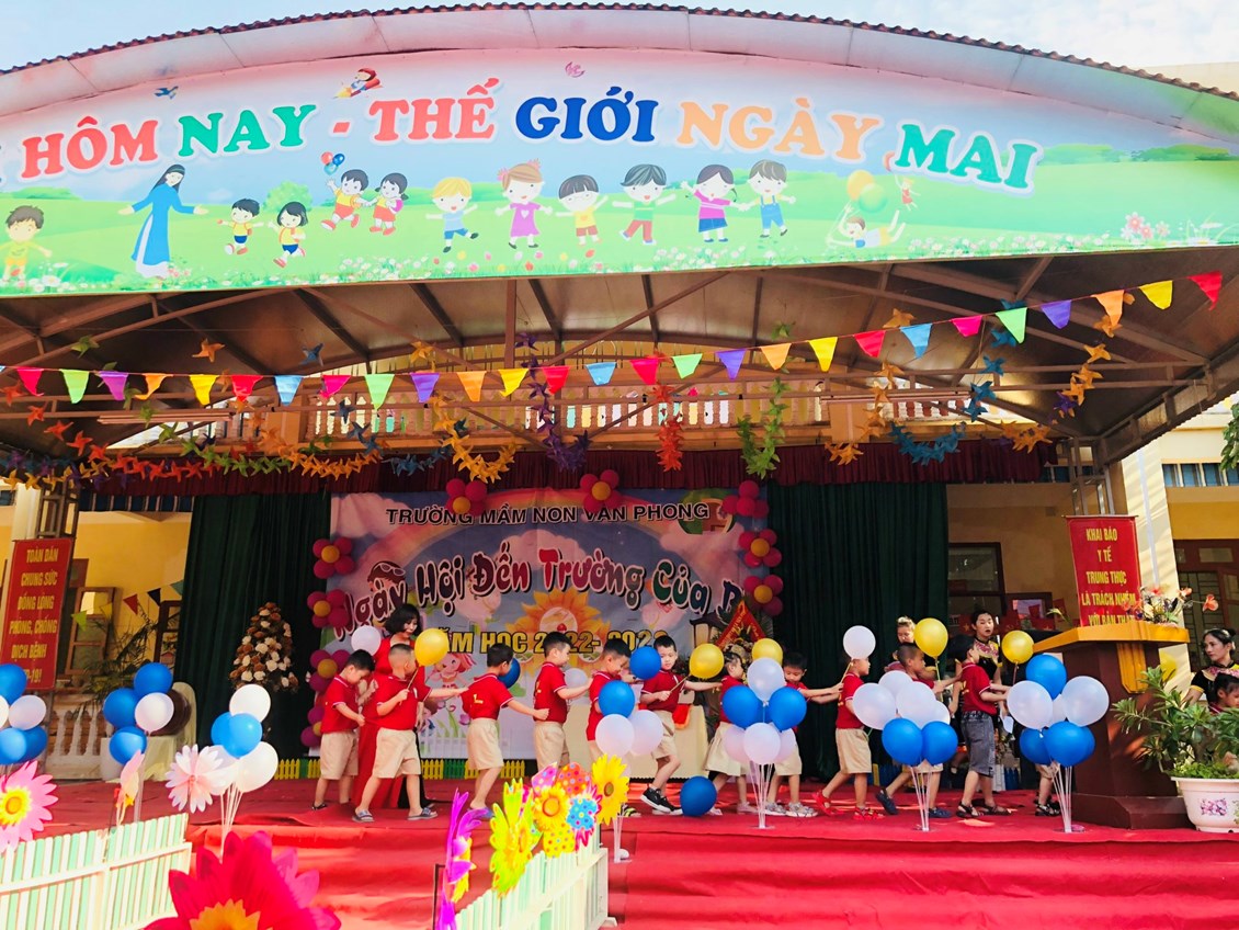 Hòa trong không khí những ngày thu lịch sử đầy phấn khởi và tự hào, cả nước hân hoan chào mừng chào mừng kỉ niệm 77 năm Cách mạng tháng Tám và Quốc khánh 2/9. Thực hiện sự chỉ đạo của phòng GD&ĐT, được sự nhất trí của các cấp các ngành. Hôm nay, ngày 5/09/2022 trường mầm non Văn Phong long trọng tổ chức "Ngày hôi đến trường của bé" Năm học 2022 - 2023.