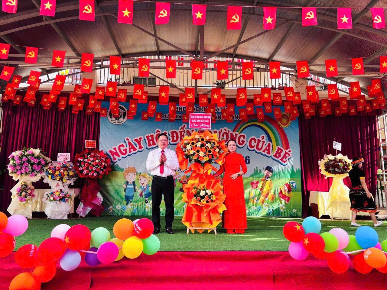 Lãnh đạo địa phương tặng hoa chúc mừng nhà trường
